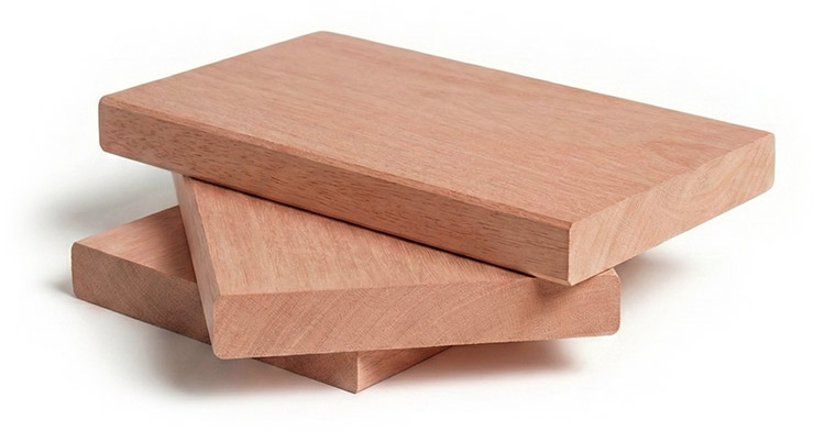 Bois exotique d’Asie classe 4, reflets brun rosé, durable, double face lisse pour finition parfaite.