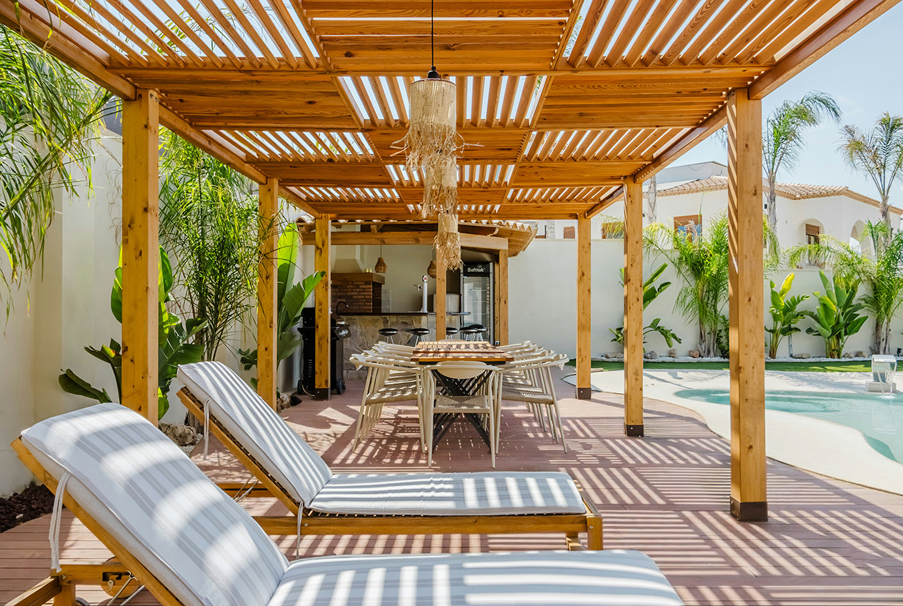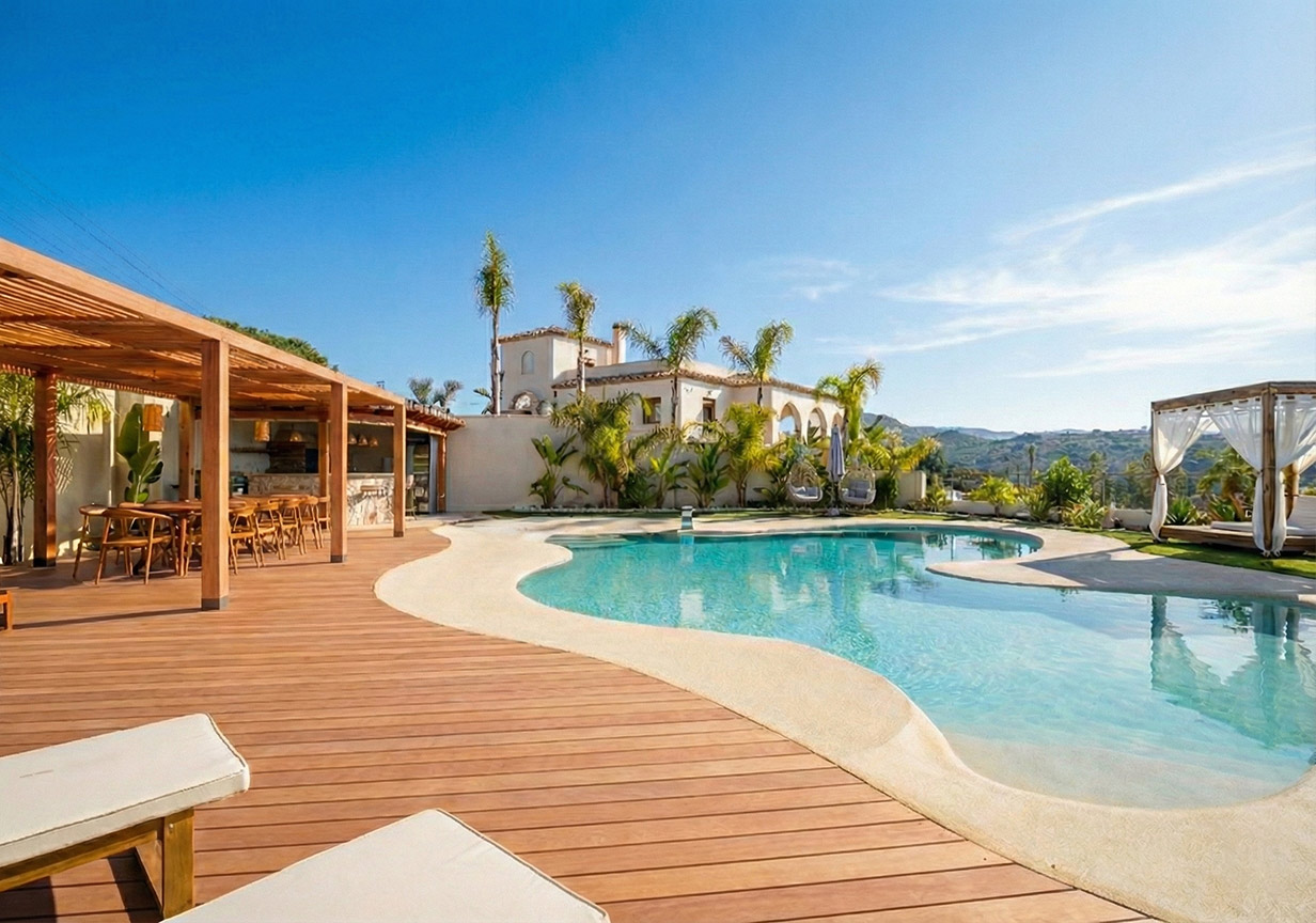 Option patine argentée : Laissez votre terrasse griser naturellement. Un simple nettoyage annuel à la brosse douce et à l’eau suffit. Cette évolution n’affecte ni la résistance ni la longévité du bois.